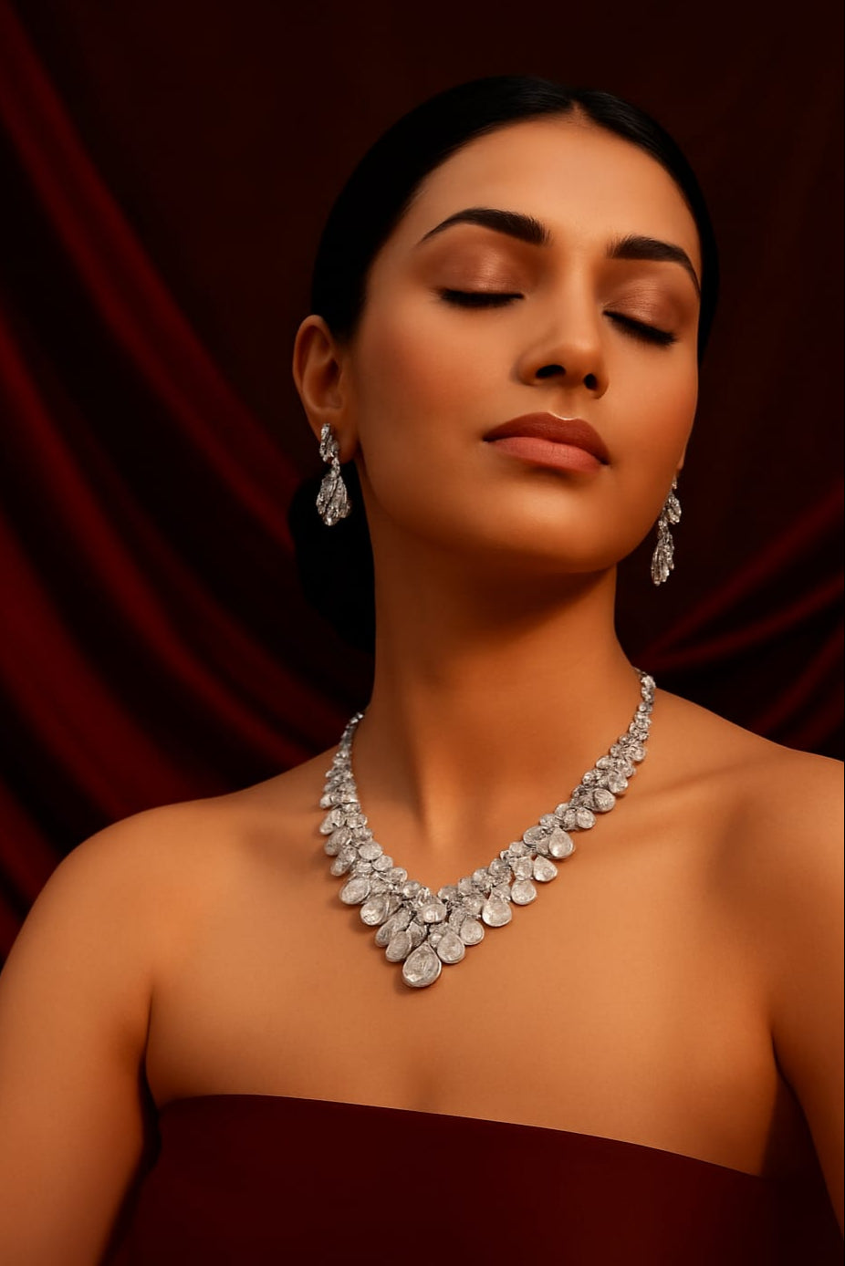 Antique Silver-Plated Red Stone Earrings with Pearls