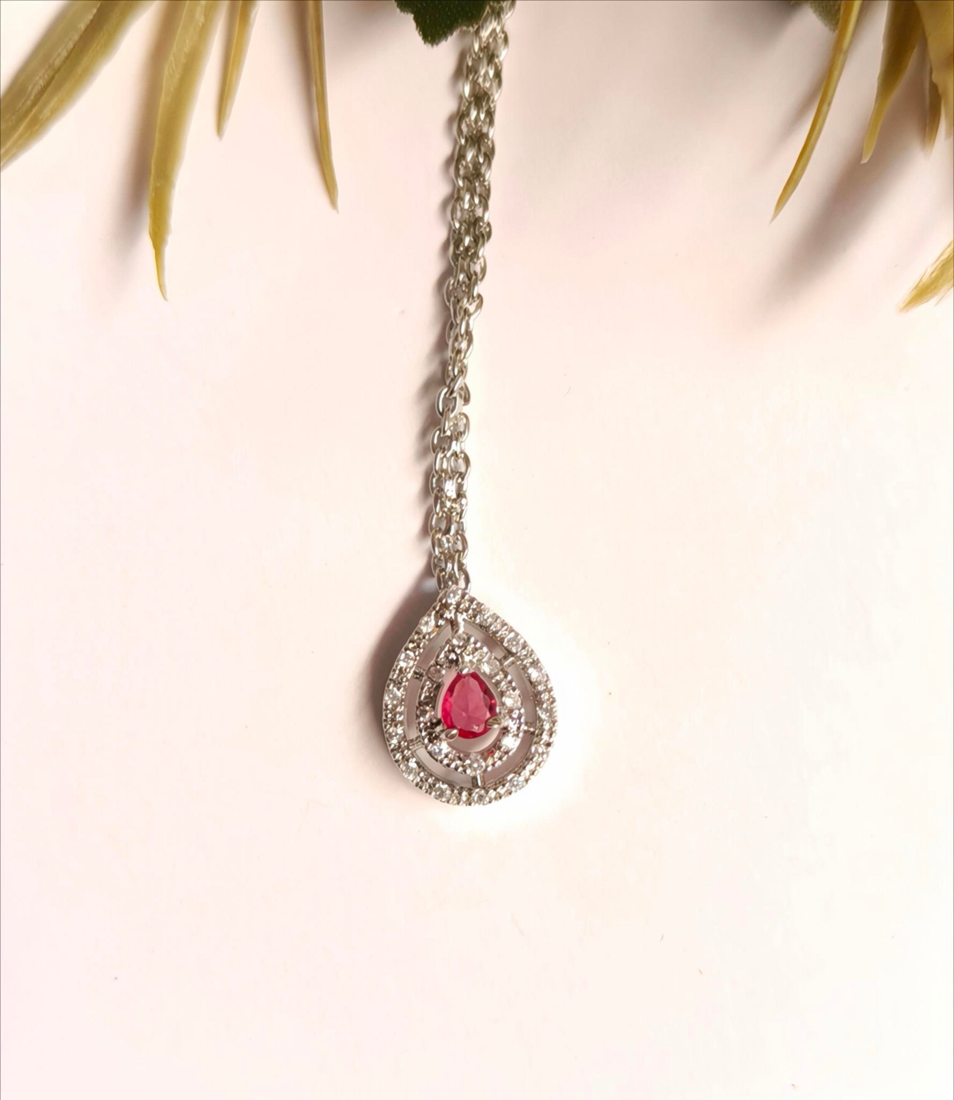 Add a touch of royal elegance to your look with the Preenaz AD Ruby Statement Necklace Set for Weddings & Parties. Crafted with premium rhodium plating and sparkling American Diamonds, this exquisite set features rich ruby red stones designed to highlight grace, luxury, and sophistication.